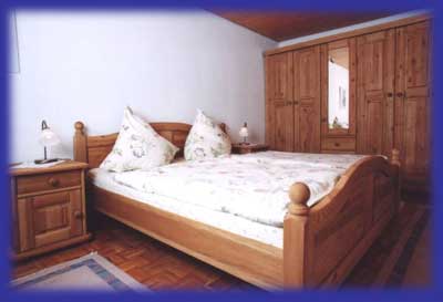 Doppelbett, großer Schrank, Kommode, Leuchten